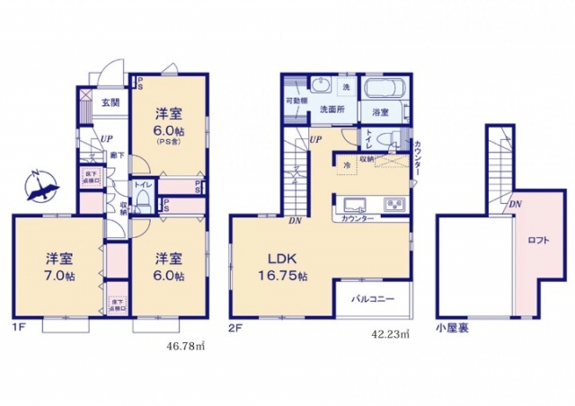 全室6帖以上のゆとりある3LDK+ロフト。開放的な2階LDKは家族の団らんに最適。各居室には収納を完備し、暮らしやすさと機能性を両立。ロフトは季節物の収納や趣味空間としても活躍。静かな住宅街で、都心へのアクセスも良好な好立地です。